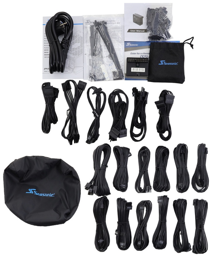 Seasonic PRIME PX-2200 — флагманский блок питания мощностью 2200 Вт с сертификатом 80+ Platinum и полной модульностью кабелей. Поддерживает новейшие разъёмы 16 pin (12V-2x6) для видеокарт, четыре 6+2 pin, а также три разъёма 4+4 pin для процессоров. Оснащён вентилятором 135 мм с гибридным режимом, активным PFC и широким набором защит (OCP, OPP, OTP, OVP, SCP, UVP). Отличается премиальной комплектацией с сумкой для кабелей и аксессуарами.
