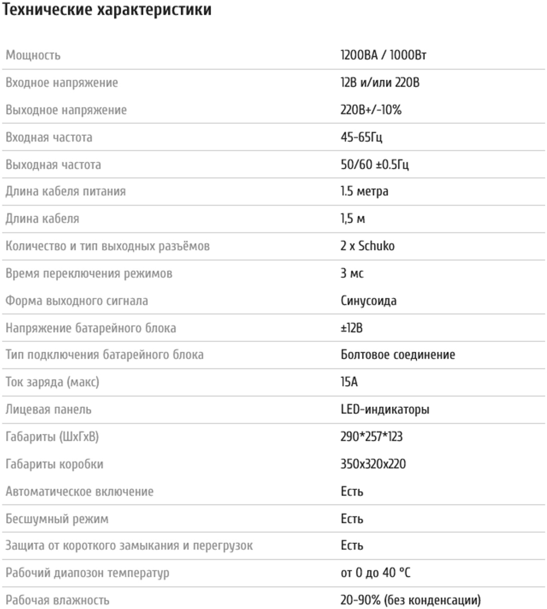 Устройство, для преобразования постоянного тока в переменный ток. Чаще всего используется для работы бытовых устройств (220В) от автомобильного аккумулятора (12В). Инверторы данной серии имеют встроенную функцию зарядки севших автомобильных аккумуляторов от городской сети. Также широко используются вместо ИБП, с подключаемыми внешними аккумуляторами. Максимальная суммарная ёмкость подключаемых аккумуляторов не ограничена.