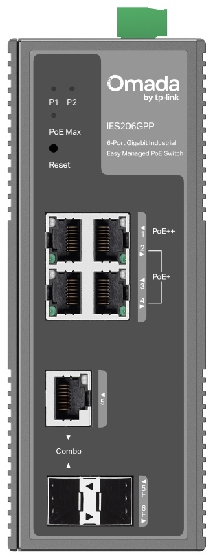 Промышленный управляемый коммутатор TP‑Link IES206GPP — 6‑портовое гигабитное решение с поддержкой PoE+ и PoE++ (1× PoE++ до 60 Вт, 3× PoE+ до 30 Вт, общий бюджет питания до 120 Вт) . Устройство оснащено 4 RJ‑45 порта 10/100/1000 Мбит/с, 1 комбо RJ‑45/SFP и 1 отдельным SFP‑слотом для гибких оптоволоконных или медных подключений. Корпус выполнен из алюминия с креплением на DIN‑рейку или стену, степень защиты IP40, диапазон рабочих температур от ‑40 °C до +75 °C, молниезащита до ±6 кВ, а питание допускает дублирование 12‑57 В DC. Управление осуществляется в режиме Easy Managed через платформу Omada (Web/приложение), включая функции L2‑коммутации: VLAN, QoS, STP/RSTP и др. Это решение идеально подходит для промышленных объектов и тяжёлых условий эксплуатации, где требуется надёжное подключение с питанием устройств по PoE и высокими требованиями к устойчивости сети.