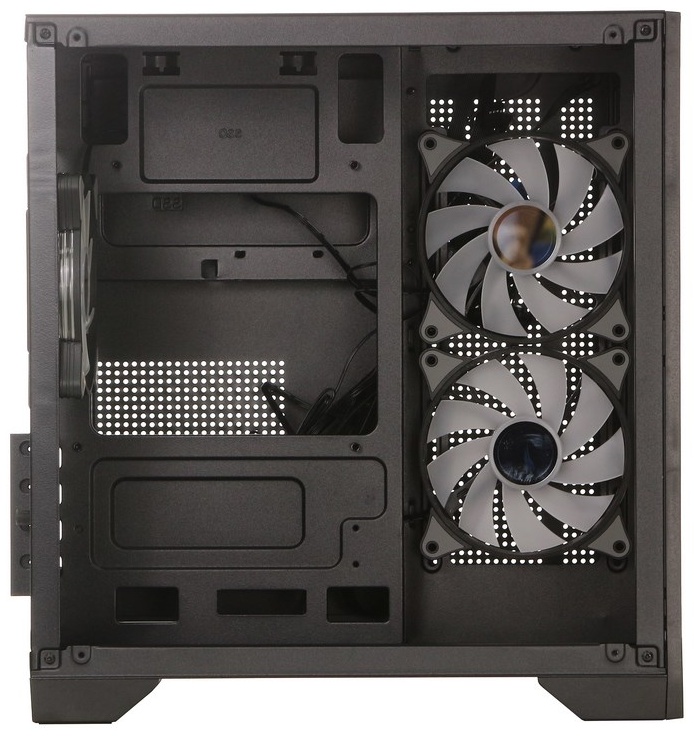 Боковая панель из закаленного стекла, Подсветка установленных вентиляторов, Антивибрационные подстав