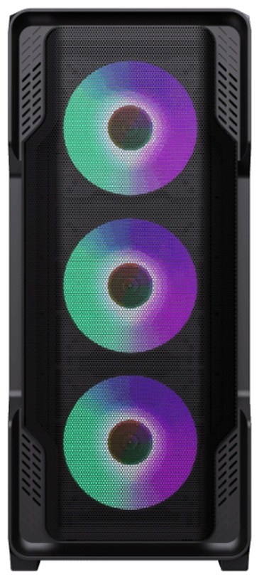 Современный корпус форм‑фактора Middle Tower, разработанный для сборки мощных игровых и рабочих систем с акцентом на вентиляцию, прочность и стильный внешний вид. Чёрное исполнение корпуса подчёркивает строгий, универсальный дизайн, который легко сочетается с компонентами любой конфигурации и RGB‑подсветкой.