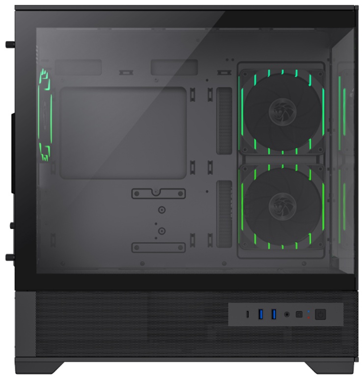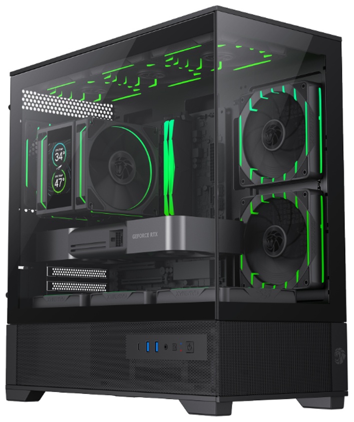 Корпус предлагает достаточно внутреннего пространства для установки длинных видеокарт, высоких процессорных кулеров и радиаторов систем жидкостного охлаждения, что делает его подходящим решением как для производительных, так и для игровых конфигураций. Продуманная компоновка облегчает процесс сборки и модернизации, а предусмотренные места для установки нескольких вентиляторов обеспечивают эффективную циркуляцию воздуха и стабильный температурный режим даже при длительных нагрузках.