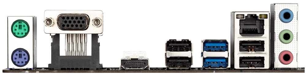 1 x VGA, 1 x HDMI, PS/2 клавиатура, PS/2 мышь, RJ-45 LAN, Line-in, Line-out, Mic-in, 2 x USB 3.2 Gen