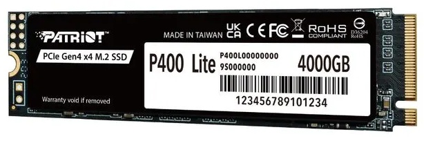 SSD P400 Lite PCIe Gen4 x4 M.2 2280 - это новый диск Patriot в формате M.2 2280 четвёртого поколения. Предназначен для широкого круга пользователей, отличается широкой совместимостью и простотой эксплуатации. Скорость работы SSD P400 Lite и большой выбор емкостей позволяют использовать этот диск для решения самых разных задач. Конструкция P400 Lite предусматривает тонкий графеновый радиатор для рассеивания тепла.