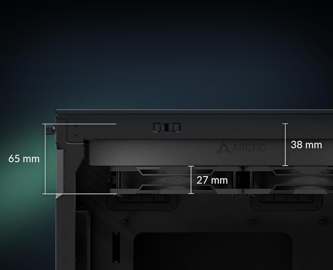 458x138x38мм, с установленными вентиляторами 458x138x65мм